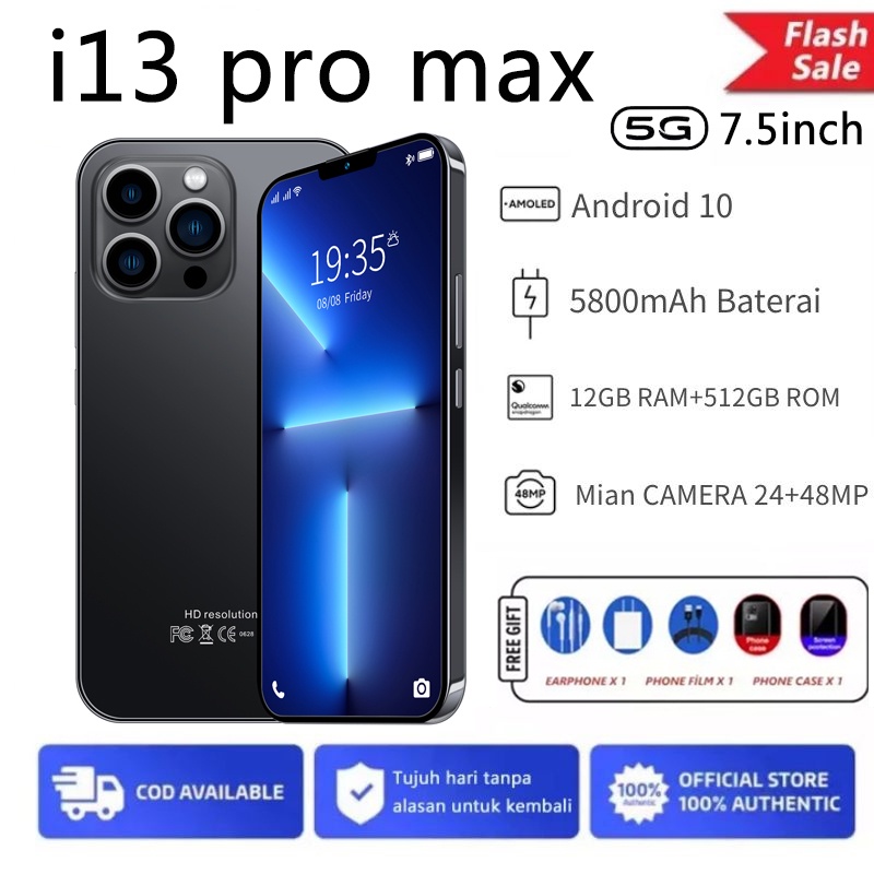 【Produk Baru HP】 hp murah i13 Pro Max 7,5 inci Smartphone HD Kamera Ponsel Ponsel Pintar Baru Android RAM 12GB + ROM 512GB Ponsel dual card dual standby Kamera HD gaming phone Baru Asli